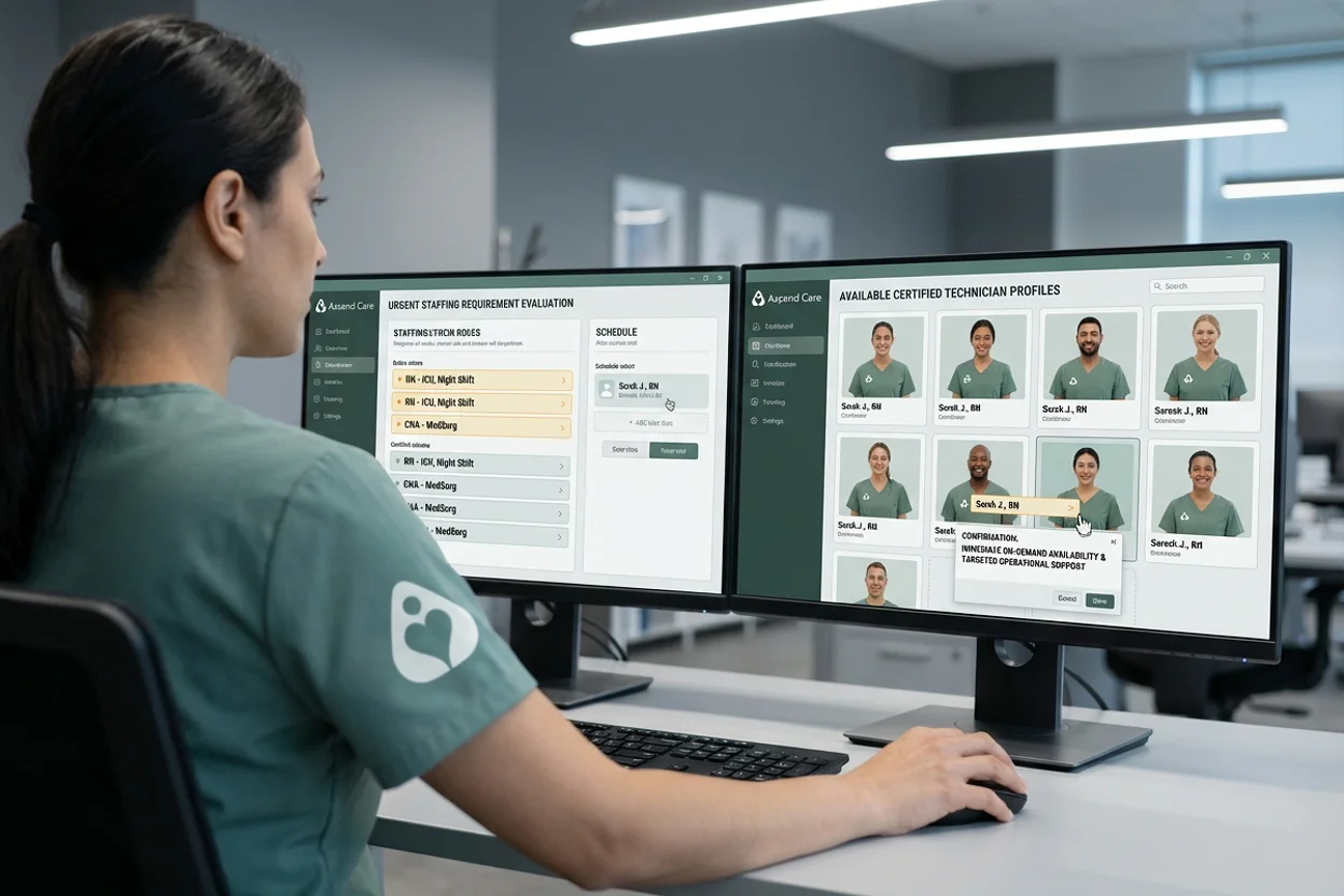 Ascend Care supplies qualified Technicians for urgent staffing needs, peak periods, or unexpected absences. Our team helps facilities maintain smooth operations and uninterrupted patient care.